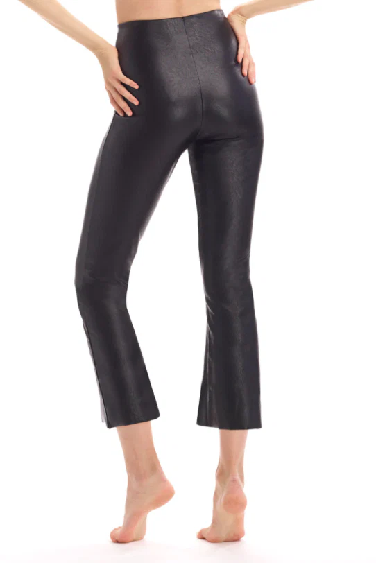 A cropped faux leather flare pant made with remarkable 4-way stretch, real leather look, and commando's signature internal waistband.